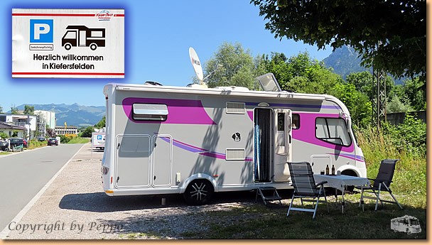 Rund 134 km Autobahn sind geplant, ca. um 10:30 Uhr sollten wir am Stellplatz in Kiefersfelden eintreffen. Leider machen wir die Rechnung ohne einen gewaltigen Stau der uns 2,5 Stunden im Schritttempo fahren lässt bzw. alles steht - nichts geht mehr. Wir schaffen es, kommen halt erst um 13 Uhr an, Platz gibt's diesmal noch genug, unseren Ankommensschluck geniessen wir heute aber doppelt. |