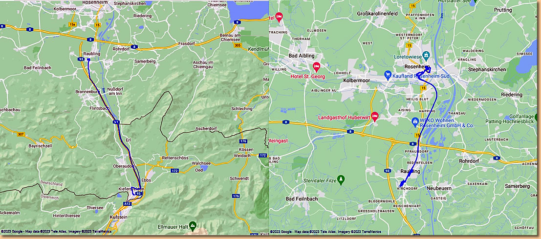 Abfahrt um 8 Uhr, den knapp 20 Kilometer langen LKW-Stau Richtung Grenze gibt's gottseidank auf der Gegenfahrbahn und deshalb kommen wir zügig voran und stehen um 8:30 Uhr schon vor den Toren der Firma Wolfrum in Raubling. Kurz darauf steht unser Womo in der Werkstatt und wir sind für einige Stunden obdachlos. Wir spazieren in den Ort und entschließen uns spontan mit dem Zug nach Rosenheim zu fahren. 7 Euro pro Person hin und retour, ca. 6 Minuten Fahrzeit und schon sind wir unterwegs ins Zentrum. Es erwartet uns eine nette und gepflegte Stadt, am Hauptplatz reiht sich ein Lokal an das andere und nach ca. 1,5 Stunden kreuz und quer durch Strassen und Gassen sind wir für eine Pause dankbar. |