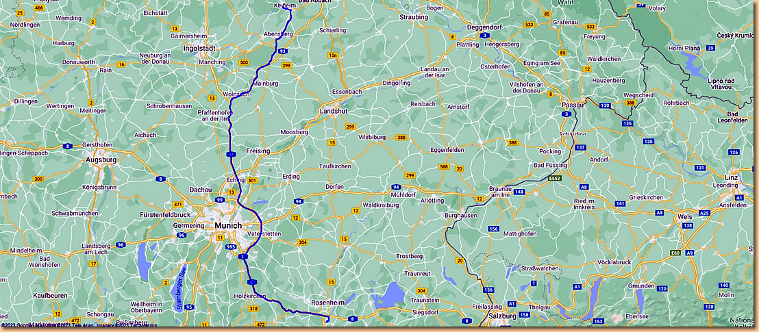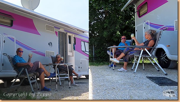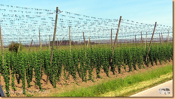 Um 8 Uhr sind wir schon wieder unterwegs und auf ziemlich vollen Autobahnen und durch die vielen Hopfenfelder in der Hallertau erreichen wir gegen 11 Uhr unser heutiges Ziel. Der Stellplatz in Kelheim ist gross und daher kein Problem einen Platz zu finden. Das übliche Prozedere, hinstellen, Womo klar machen, Sessel raus und uns einen Apero genehmigen. |