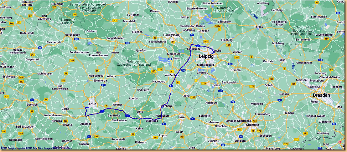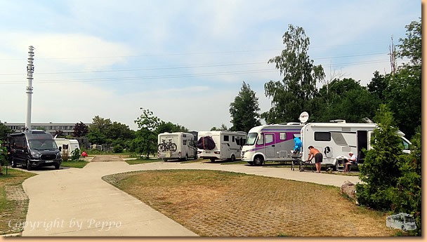 Morgenrunde ins benachbarte Dörfchen und vorbei an Kirschenplantagen und Erdbeerfeldern. Erstere sind noch nicht reif, aber eine handvoll Erdbeeren wandern auf den Frühstückstisch. Da für heute keine Aktivitäten geplant sind lassen wir uns Zeit und kommen nach einer angenehmen Fahrt gegen Mittag in Leipzig an. Am Reisemobil-Stellplatz Melinenburg finden wir eine Parzelle mit viel Grün rundherum, alles schaut gut aus, wir sind zufrieden und werden uns hier für zwei Tage niederlassen. |