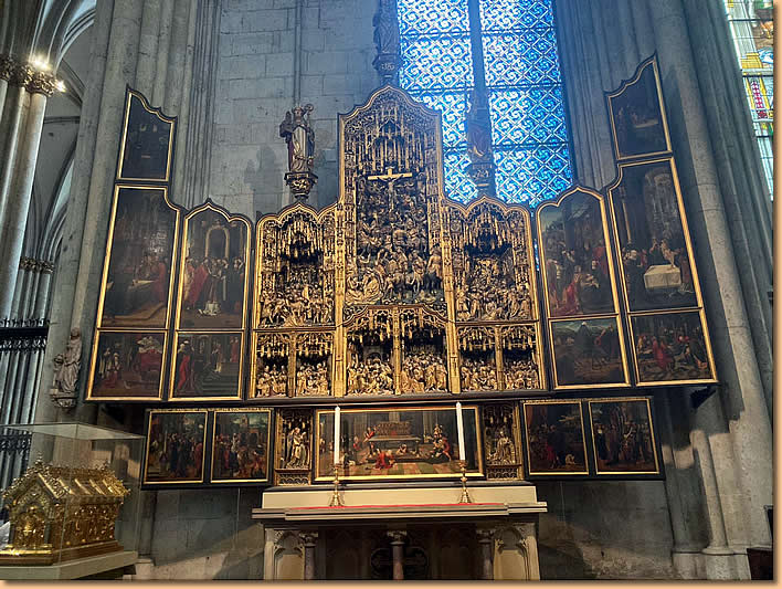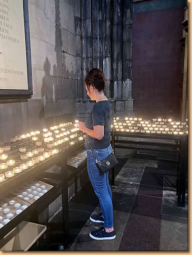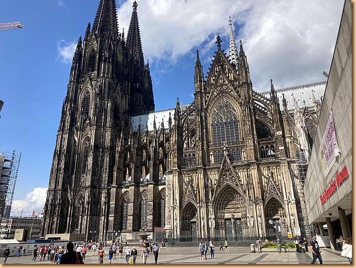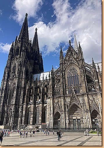 Am frühen Nachmittag spazieren wir in die Altstadt und nach knappen 20 Minuten stehen wir schon vorm Kölner Dom. Leider spielt das Wetter nicht ganz mit, Wolken ziehen immer wieder durch und lassen das imposante Gebäude etwas dunkel erscheinen. |