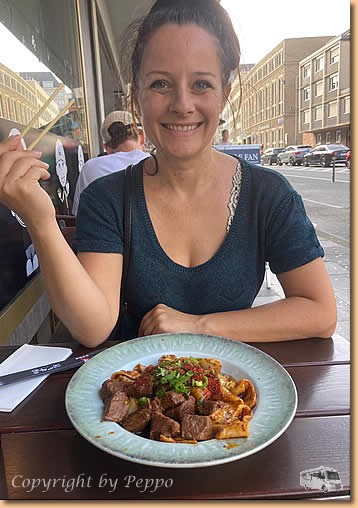 Wir spazieren noch ein bisschen kreuz und quer, lassen uns ein verspätetes Mittagessen schmecken und dann geht es bei Regen und Wind im Laufschritt nach Hause. Ich werde morgen nochmals in die Stadt gehen und mich wieder ein wenig umschauen. |