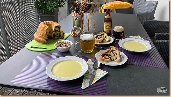 Wir eröffnen den Kirchtag für uns am Dienstag, 2.8.2023 auf Balkonien. Mit einem selbstgebackenen Reindling und dazu dank Claudia und der LKH-Küche eine ausgezeichnete Kirchtagssuppe gelingt es bestens.