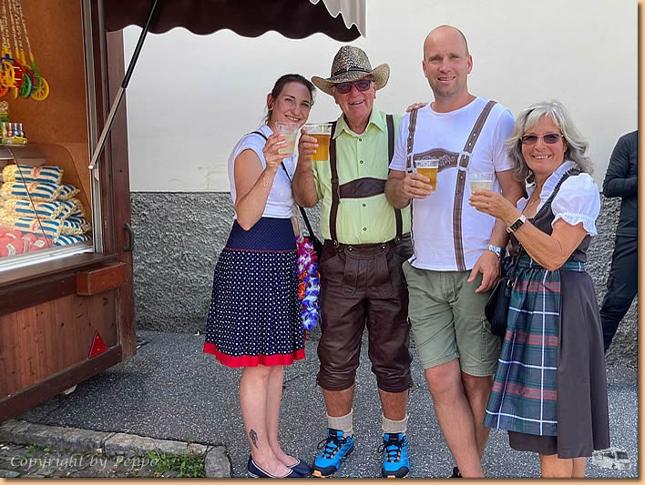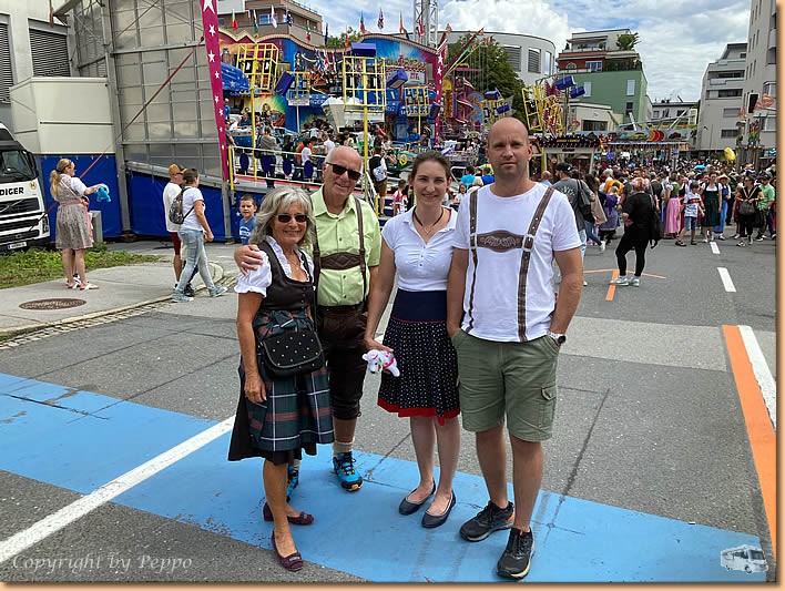 Der Wettergott meint es nicht sonderlich gut, der grosse Brauchtumsumzug am Samstag, 5.8.2023 fällt zum Teil dem Regen zum Opfer, auch wir bleiben daheim, sehen allerdings einen kleinen Teil vom Fenster aus.