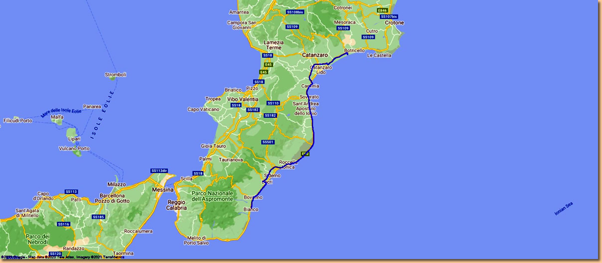 Die calabrische Südküste ist neu für uns, wir staunen über bizarre Felsformationen, Bergdörfer und über herrliche Sandstrände, eine wunderschöne Gegend. |