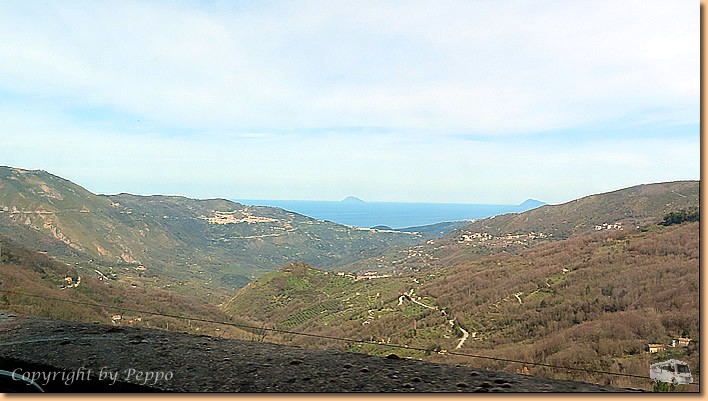 Ein Bilderbuchtag, wolkenlos, windstill und purer Sonnenschein. Wir nützen ihn natürlich aus und radeln nach Capo d'Orlando und dann weiter der Küste von San Gregorio entlang bis zum Hafen. Bizarre Felsformationen, glasklares Wasser, wir sind jedes Mal voll begeistert. Cappuccinopause mit Blick aufs Mare muss sein, dann noch einkaufen und wieder ab nach Hause. |