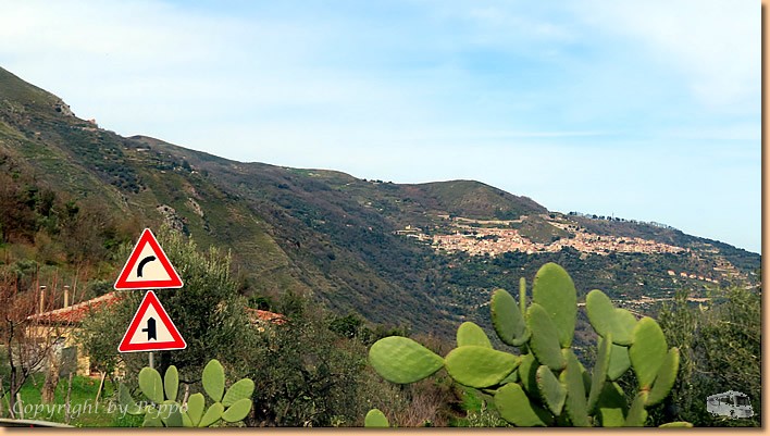 Wieder ein wunderschöner Tag und dem von Bernd geplanten Ausflug nach Randazzo steht nichts mehr im Wege. Um 9:15 Uhr gehts los, auf wenig befahrenen Strassen erreichen wir Tortorici und da ist dann Schluss mit lustig. Unser Reiseleiter fährt an einer unübersichtlichen Abzweigung Richtung Randazzo vorbei und schon befinden wir uns mitten in der Stadt und leider aber auch auf der falschen Strasse. |