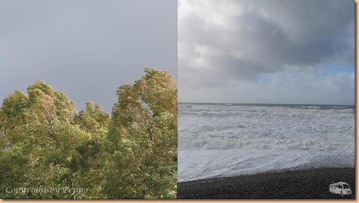 Sport im Fernsehen gibt es gottseidank auch, die E-Books kommen fast zum Glühen und für kurze Zeit trauen wir uns ins Freie. Schnell Fotos vom aufgewühlten Meer und den neuen vierbeinigen Nachbarn und dann wieder nix wie rein ins Womo. Morgen ist der Spuk wieder vorbei, wir nehmen es sowieso locker, genehmigen uns einen vino und wünschen einen schönen Abend. |