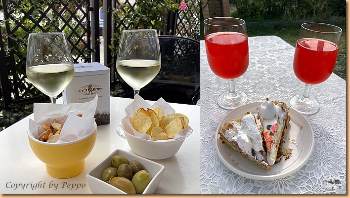 Radltour mit Einkehrschwung zum Einkaufen nach Capo d'Orlando. Wieder retour geht sich noch eine Stunde lesen und die Sonne geniessen aus, dann gehts auf zu Bernd. Wir sind zum Mittagessen eingeladen und es schmeckt wie immer ausgezeichnet. |