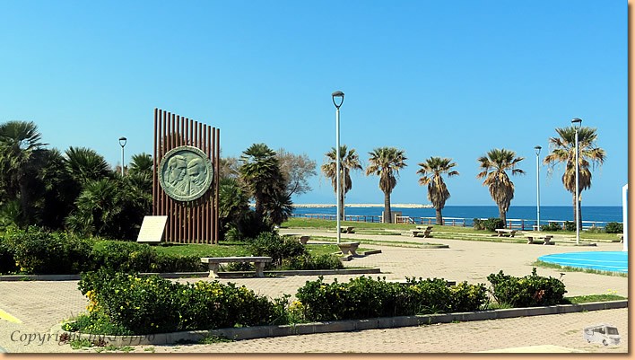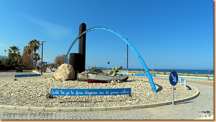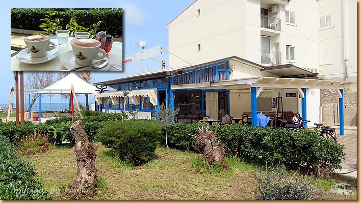 Am Vormittag radeln wir dem Lungomare entlang nach Sant'Agata di Militello. Viel gibts nicht zu sehen, aber am Wasser entlang fahren ist immer wieder schön. Retour gehts der Bundesstrasse entlang und nach ca. 20 km sitzen wir schon wieder gemütlich vorm Womo. |