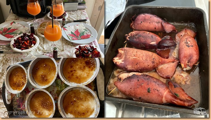 Butterweiche, mit Schrimps und Frühlingszwiebel gefüllte Totani, Salat und als Dessert Pannacotta, im Ristorante könnten wir nicht besser essen. Satt und zufrieden kommen wir wieder heim, setzen lesen in der Sonne solange fort, bis sich der Wärmespender hinter Wolken versteckt und wir für heute ins Womo wechseln. |
