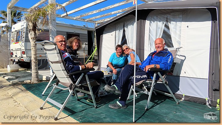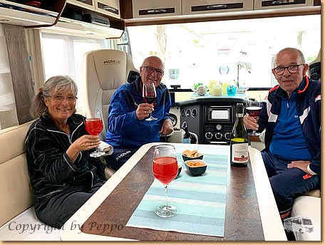 Zum Apero sind wir dann bei unseren Freunden eingeladen, die Heizung wärmt von aussen, der Wein von innen, danke für den netten Nachmittag. Wir wechseln das Womo, lassen uns ein Wienerschnitzel schmecken und wünschen allen einen gemütlichen Nachmittag und einen schönen Abend. |