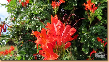 Heute ist eindeutig der wettertechnisch schlechteste Tag unserer Überwinterung. Um 6:30 Uhr fängt es zu regnen an und ein Ende ist nicht in Sicht. Laut Wetterbericht wird es noch schlimmer denn in der Nacht und morgen soll noch mehr Sturm und Regen hinzukommen. Die Wege am CP verwandeln sich in Seen und Bäche und wer nicht unbedingt hinaus muss bleibt im warmen Wohnmobil. Gottseidank gibt es die alpine Schi-WM im Fernsehen. |