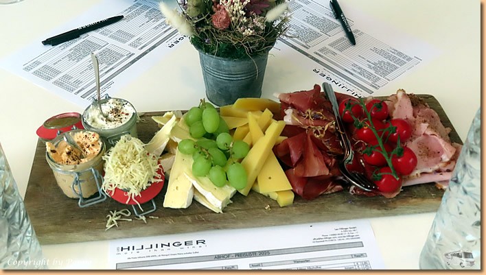 Ein wunderschöner Tag erwartet uns. Das Frühstücksbuffett wie immer bestens bestückt, wir sind mehr als zufrieden. Um 10:30 Uhr bringt uns der Bus zum Weingut Hillinger. Eine Führung mit anschliessender Weinverkostung steht am Vormittagsprogramm. Von einem äusserst kompetenten jungen Winzer bekommen wir Einblick über die Entstehungsgeschichte der Hillingerweine. |