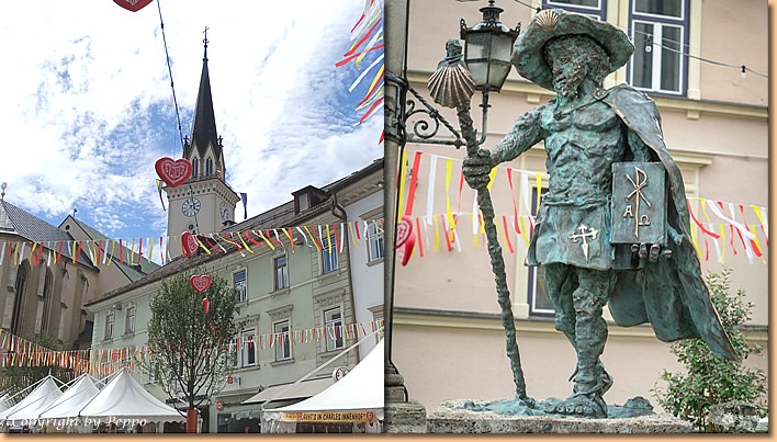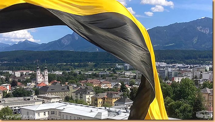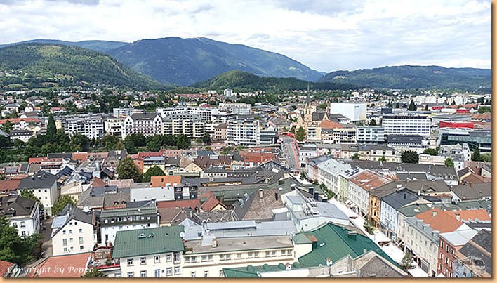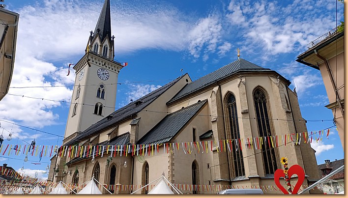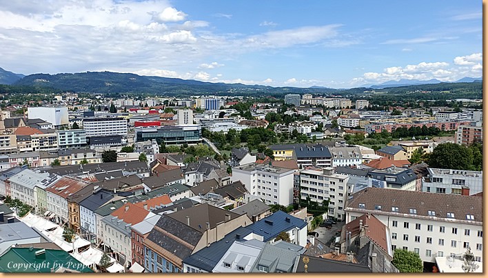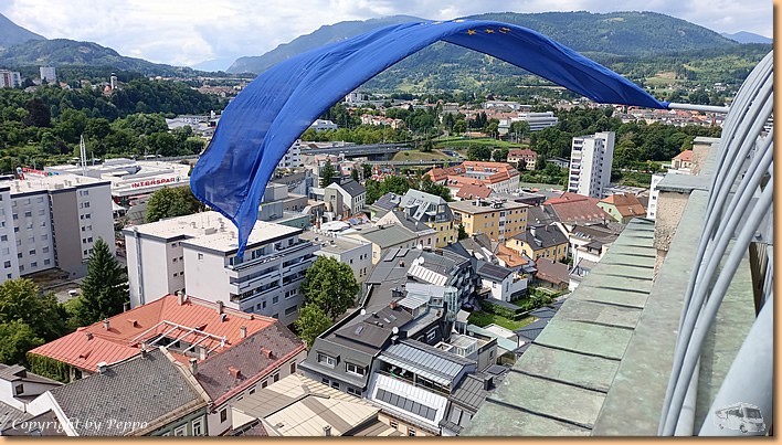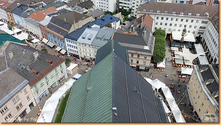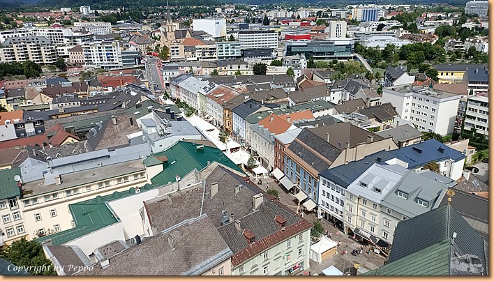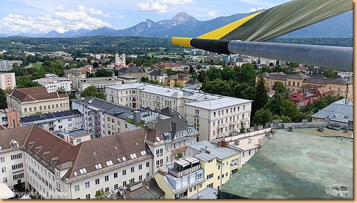 Aus der Vogelperspektive wollen wir einen Blick auf den 80. Villacher Kirchtag werfen. Mit 94m Höhe und 239m Stufen bietet sich natürlich der Stadtpfarrturm der Kirche St.Jakob an. Der Ausblick ist wie immer fantastisch, vom Kirchtag ist allerdings leider nicht viel zu sehen. |