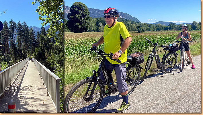 Wir nützen den herrlichen Sonnenschein und radeln um 10 Uhr los. Auf dem Alpe-Adria-Radweg über die Friedensbrücke und dann ein wunderschönes Stück der Gail entlang.
