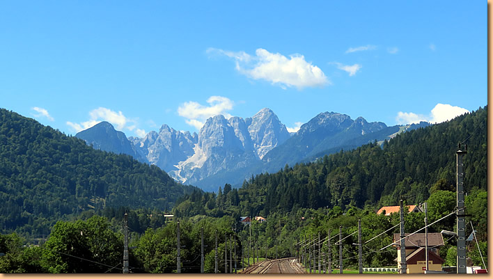 In Höhe Erlendorf überqueren wir den Fluss und weiter geht es entlang der Bundesstrasse. Bald ist Arnoldstein erreicht und bis zur Grenze ist es nicht mehr weit.