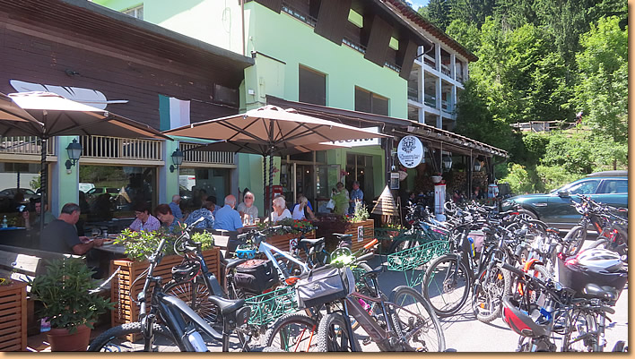 Kurz nach Thörl-Maglern erreichen wir den alten Grenzübergang und haben nun "Italien per Rad" erreicht. Die Belohnung ist ein Mittagessen in der Pizzeria Italia, leider haben wir auf's Fotografieren vergessen. Geschmeckt hat es und gestärkt treten wir den Heimweg an.
