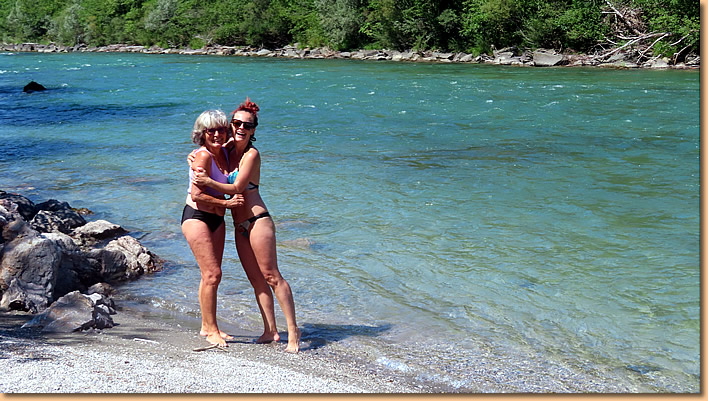 Für die Mädels gibt es einen Badestopp an der Gail, ich verzichte, einer muss schliesslich auf die Räder aufpassen.