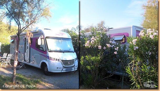 | Das Sanitärgebäude ist neu, alles sauber und perfekt, Bar, Ristorante und Strand nahezu gleich wie beim letzten Besuch und natürlich sind auch bekannte Camper am Platz. Wir freuen uns jetzt auf entspannte Tage, spazieren, radeln und schwimmen stehen am Programm, aber auch viel Nixtun und gemütlich vorm Womo sitzen. |
