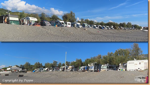 | Gegen Mittag treffen wir am Lido Tropical in Diamante ein. Mit einem gut besuchten Platz haben wir gerechnet aber er ist bis auf die letzte hintere Reihe fast voll. Wir haben Glück, eine für uns passende Parzelle ist frei geworden und die wird nun für die nächsten 12 Tage unser Stützpunkt. |