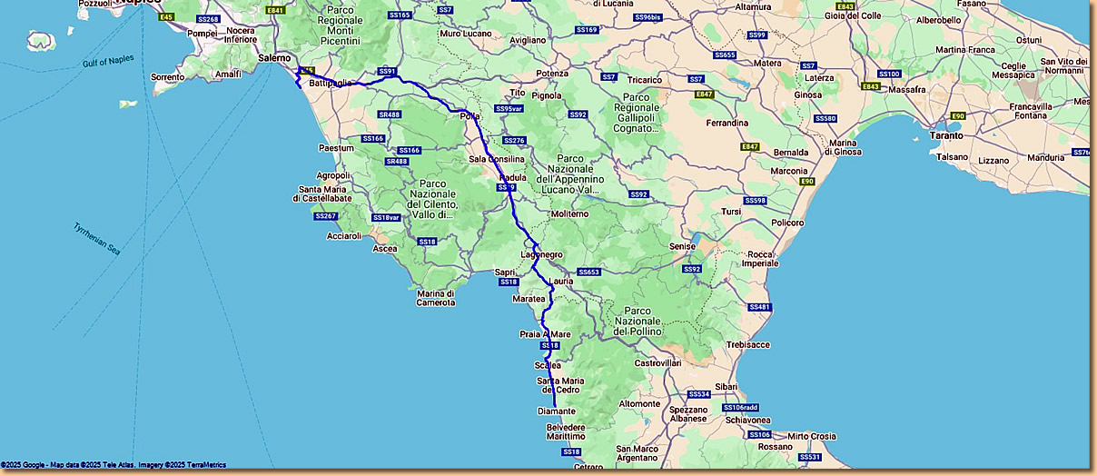 | Unsere Reise geht wieder ein Stück weiter in den Süden. Nicht viel Verkehr auf der Autobahn und auch auf der Bundesstrasse kommen wir flott voran. |