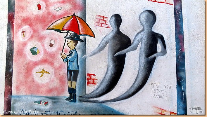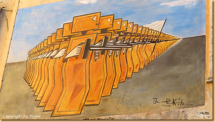| Helga's Morgenrunde geht heute nach Diamante, das Ergebnis: 8 km in den Beinen und frisches Gebäck am Frühstückstisch. Bis Mittag wird getrödelt und dann spazieren wir gemeinsam in die Stadt. Wieder kreuz und quer durch die Gassen, ein paar neue Murales kommen uns auch vor die Linse. |
