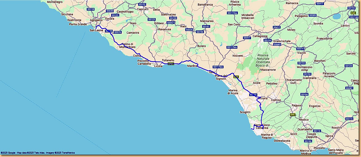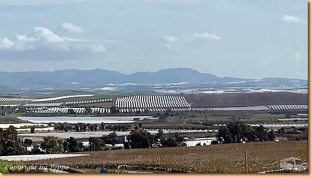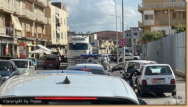 | Bis wir heute vom Cp Valle dei Templi loskommen ist es fast schon 10 Uhr. Ein Zwischenstopp in Mosé bei Lidl steht auch noch an und dann geht es zügig dahin. Unübersehbar die riesigen mit Plastik überzogenen Gemüseplantagen. Schaut nicht schön aus, fast jeder regt sich darüber auf, aber alle wollen Gemüse zu jeder Jahreszeit am Teller haben. In Gela stehen wir dann ordentlich im Stau. Auf der Hauptstrasse kein Weiterkommen, Geduld und Ruhe ist gefragt. |