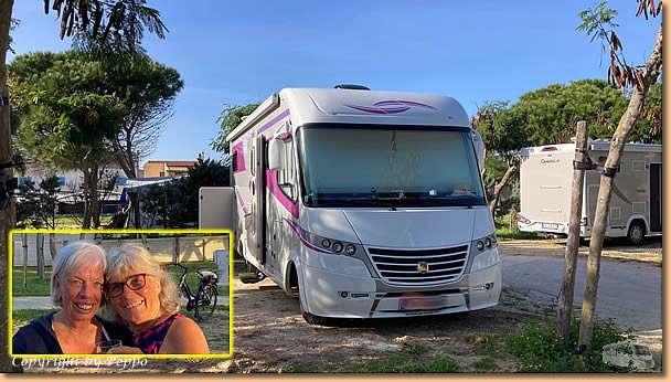 | Nach zweimonatiger Anreise treffen wir am Cp Rocca dei Tramonti ein. Wir haben auf unserer Reise wieder viel erlebt und gesehen und freuen uns jetzt auf einen hoffentlich angenehmen Winter. Wir hoffen auf wenig Wind und Regen, die Sonne ist allerdings immer willkommen. Fotos vom Ankommen gibts fast keine, wir werden herzlichst empfangen und vor lauter Hallo und Begrüssungschlucke kommt das Fotografieren zu kurz. Macht nichts, morgen schauen wir uns erst einmal um. |