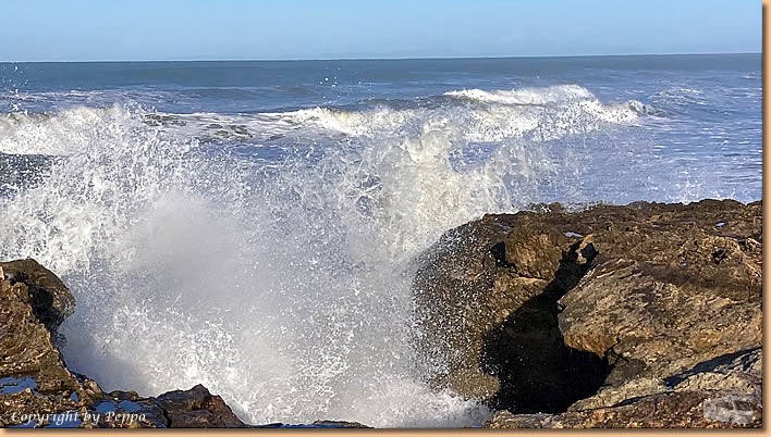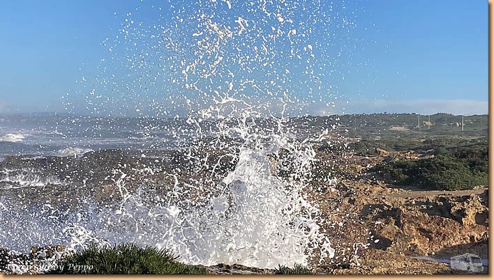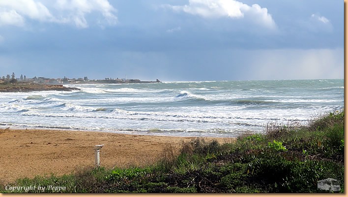 | Heute haben uns Wind, kalte Luft und kurzzeitige Regenschauer erreicht, vor Schreck versteckt sich zwischenzeitig die Sonne immer wieder hinter dunklen Wolken. Es gelingt uns zwar eine kleine Strandrunde zu den anderen CP's, ansonsten sind wir daheim besser aufgehoben. |