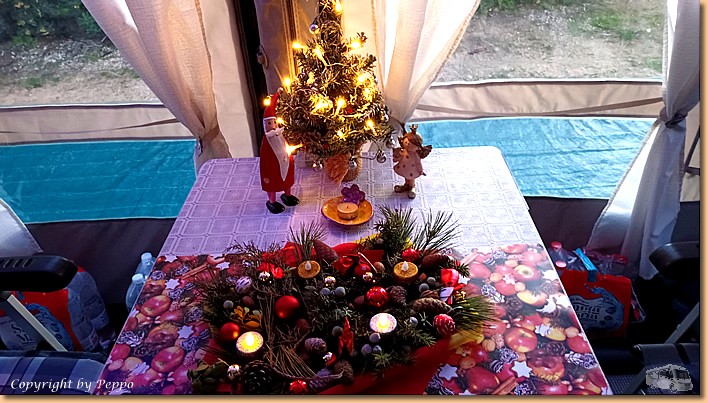 | Am Abend ein Glas vino im warmen Womo, und so geht für uns der Tag gemütlich zu Ende. |