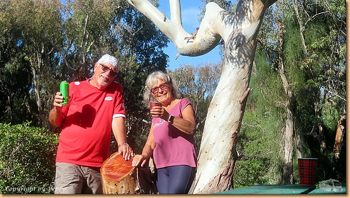 | Nach ca. 7 Kilometern sind wir wieder am Platz und dann wird erst einmal gerastet. Am Nachmittag laden uns Riecke und Wolfgang zu einem Umtrunk ein, danke, nett war's, die Zeit ist wieder einmal wie im Fluge vergangen. |