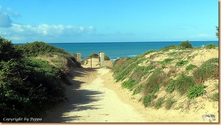 | Leider ist unsere gemeinsame Zeit schon wieder vorbei. Ciao Töchterchen, schön war's, komm gut nach Hause. Wir radeln am Vormittag nach Punta Secca. Das Haus von Commissario Montalbano ist dieses Wochenende für Besucher geöffnet und das lassen wir uns natürlich nicht entgehen. Wir wandeln auf seinen Spuren vom Wohnzimmer, Schlafzimmer, Küche und sind natürlich vom Balkonausblick auf's Mare begeistert. |