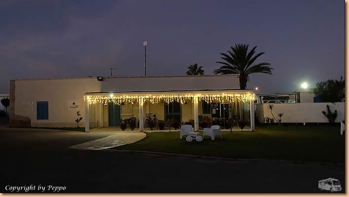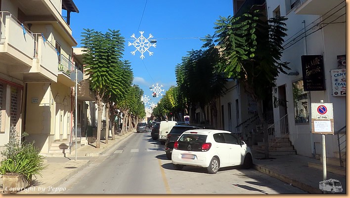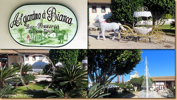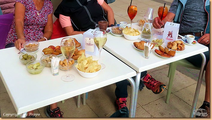 | Um 10:30 Uhr sitzen wir, begleitet von Birgit und Volker, wieder auf den Rädern und auf geht's nach Marina di Ragusa. Die Weinhandlung Pallavicino ist unsere erste Station, Despar und MD folgen und damit sind unsere Fahrradtaschen fast voll. Am Lungomare im Caffé delle Rose ist ein Platz für uns frei und wir geniessen die Sonne, den vino bianco und natürlich die dazugehörenden Snacks. |