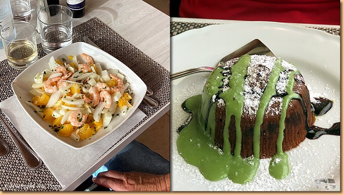 | Vielleicht weniger auf uns, aber das getrocknete Brot wird gerne angenommen. Weiter geht es zu Conad wo wir unseren Kühlschrank wieder ein wenig auffüllen. Durch die Stadt wieder retour zum Ristorante Al Giardino di Bianca. Dort treffen wir auf Birgit und Volker. |