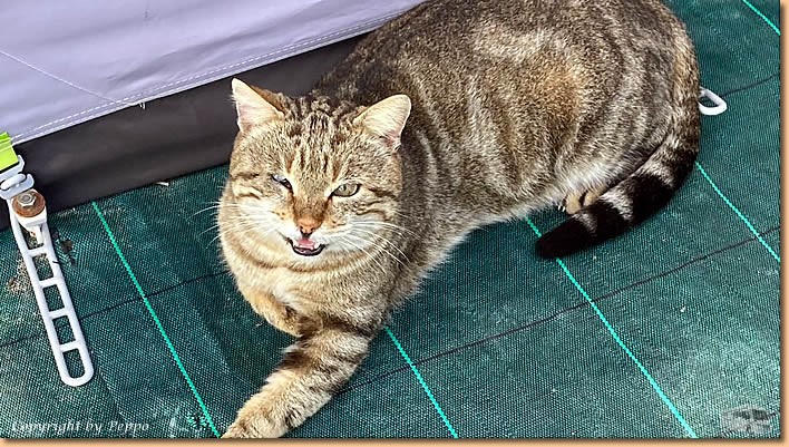 | Heute ist ein Tag wo wir kurzfristig beschliessen einfach nix zu machen. Ausser Helga's Morgenrunde und einem Bad im Meer verläuft der Tag mehr als relaxt. Wir geniessen einfach die Sonne vorm Wohnmobil, plaudern mit den Nachbarn ist sowieso klar, mehr gibts nicht zu berichten. Unsere Hauskatze fühlt sich bei uns auch wohl, eine volle Futterschüssel und Streicheleinheiten tragen sicher dazu bei. |