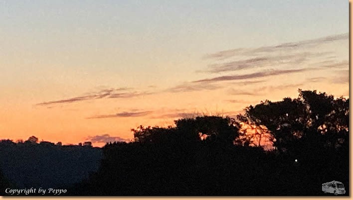 | Wieder daheim gibt es noch einen Absacker bei uns im Vorzelt, herzlichen Dank für den vino und das nette Zusammensitzen. Rückzug ins Womo, die Berichte wollen erledigt werden und dann für heute buona notte! |