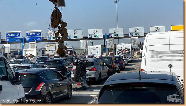 | Heute gibt es nicht viel zu berichten. Wir starten um 9 Uhr, kommen ganz gut voran, beneiden allerdings keinen von der Gegenfahrbahn. Kilometerlange Stau, kein Ende in Sicht, wir haben wirklich Glück. An der Autobahnmautstelle stehen dann auch wir, aber alles im grünen Bereich. |