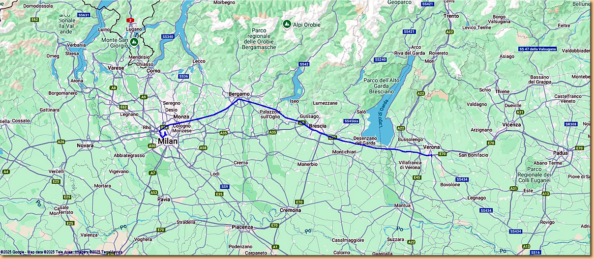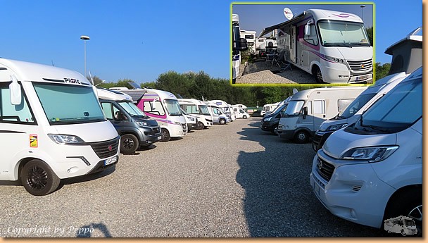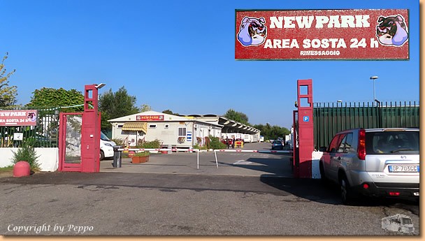 | Ein wenig speziell wird es dann in Mailand, Strassen eng, Umleitungen gibt's natürlich auch, aber wir schaffen es und stehen bald vorm Area Soster New Park Milano. Bis auf wenige Plätze alles voll, die Parzellen eng, Tisch und Stühle können wir gerade noch hinausstellen. |