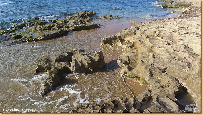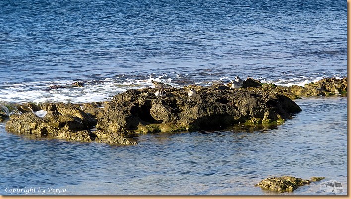 | Wir gehen es heute ruhiger an. Am Vormittag ein kurzer Spaziergang zum bald nicht mehr vorhandenen Torre Vigliena. Jedes Jahr brökeln ein paar Steine mehr ab, irgendwann ist der Torre Geschichte. Am Strand spazieren wir wieder retour und werden von Ulrike und Wolfgang schon erwartet. |