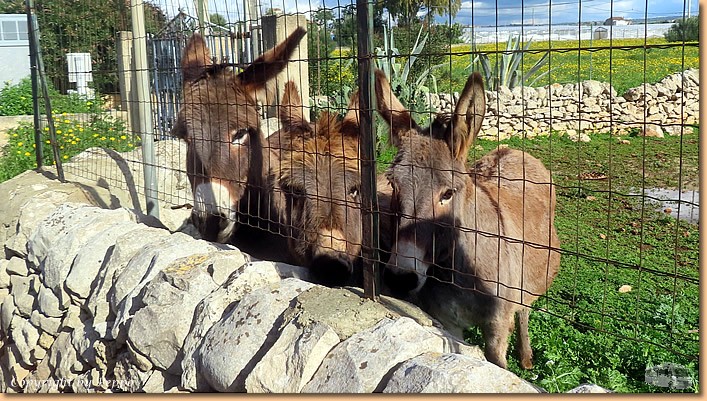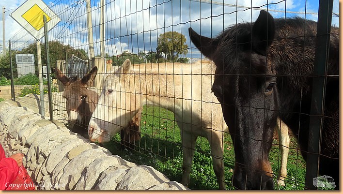 | Am Vormittag kommen wieder die Räder zum Einsatz, allerdings nur ein paar Kilometer nach Santa Croce. Unsere vierbeinigen Freunde warten auch schon und da getrocknetes Brot im Rucksack ist stehen sie für ein Fotoshooting gerne bereit. |