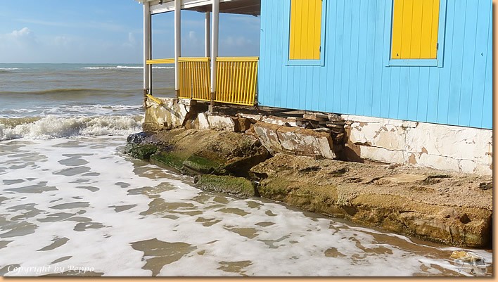 | Ein ordentliches Loch klafft und ein Weiterkommen wird hier wohl kaum noch einmal möglich sein. Am Nachmittag bleiben wir lieber daheim, Wolken, Sonne und Wind wechseln sich ab und um 16:30 Uhr schüttet es dann ziemlich heftig. |
