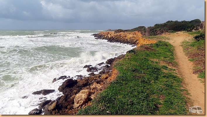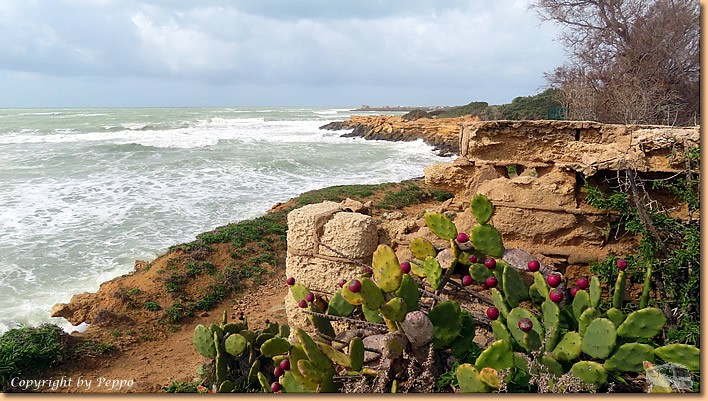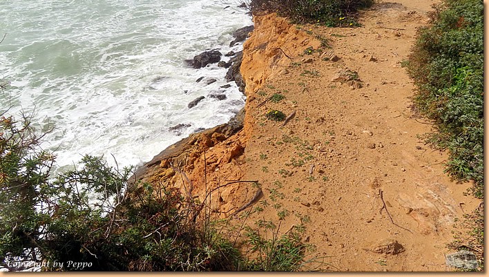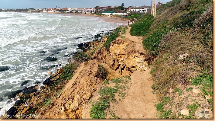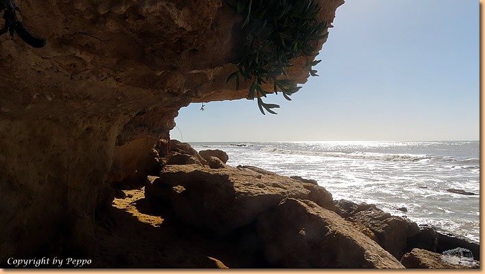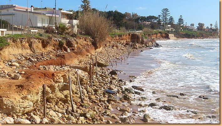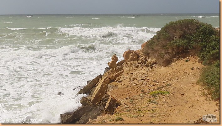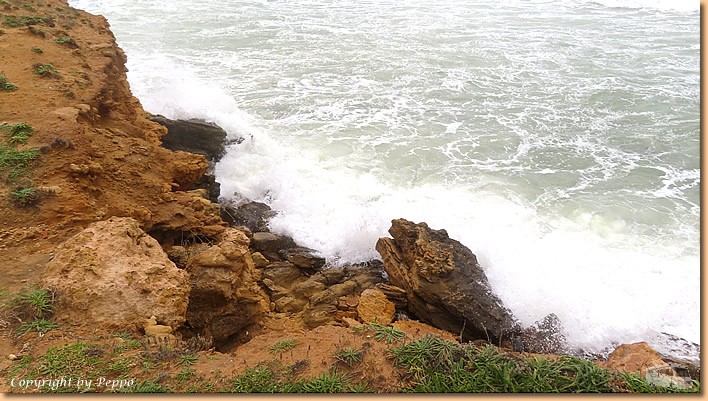 | Dass es in der Nacht wieder einmal ordentlich stürmt ist eigentlich überhaupt nichts Neues. Die Morgenrunde fällt aus, dafür geht's am Vormittag an die Klippen Richtung Punta Secca. Leider ist gleich am Anfang der Weg ein Opfer vom Wasser geworden. Wir versuchen es durch den CP Coralli auf die andere Seite. Der Weg hat auch hier ziemlichen Schaden erlitten und wird hier wohl auch nicht mehr lange begehbar sein. |