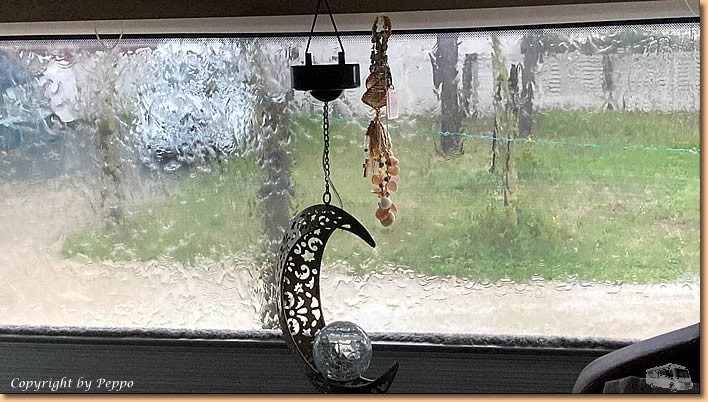 | Schauen wir mal wie lange sich der Wettergott noch austobt, es hilft aber eh nix, also ein Glas vino auf den Tisch und den Abend geniessen. |