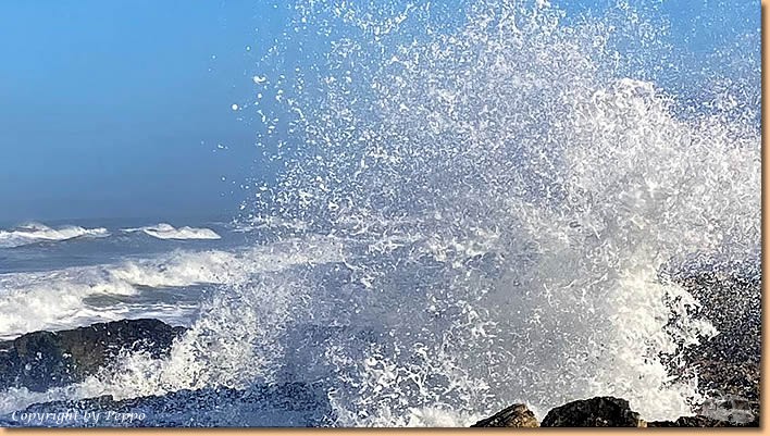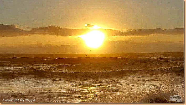 | Die Sonne zeigt ein wunderschönes Morgenrot, das Meer zeigt wieder einmal seine unbändige Kraft, nur der Wind hält sich gottseidank zurück. Für uns geht es gleich nach dem Frühstück in unsere Weinhandlung nach Marina di Ragusa. Da wir in Kürze unser Winterquartier verlassen werden decken wir uns noch einmal mit vino ein, sagen ciao und auf ein Wiedersehen im November. |