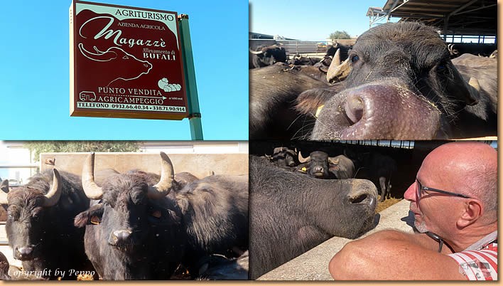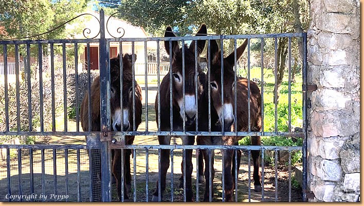 | Das Wetter passt und wir machen uns auf nach Donnafugata. Wir lieben diese Strecke, ausser einem kurzen Stück auf der Hauptstrasse geht es dann nur mehr gemütlich zwischen Feldern hinauf zum Schloss. Tierische Fotomotive müssen wie immer natürlich sein. Am Ziel eingetroffen suchen wir wieder das Farmuseum auf. Ohne verschiedene Aufstriche und anderen Kleinigkeiten verlassen wir den Shop natürlich nicht. |
