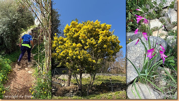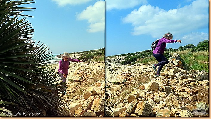 | Heute planen wir eine Vormittagsrunde über die Klippen Richtung Cava d'Aliga. Nicht ganz leicht zu laufen, da ziemlich steinig und das Unwetter hat auch das Seine dazu beigetragen. Die Sand-Stein-Wellenbar kommt uns gerade recht, den nächsten Kilometer geht es gleich leichter voran. Nach einiger Zeit müssen wir wieder den Heimweg antreten, nach 2.5 Stunden treffen wir wieder zufrieden daheim ein. |
