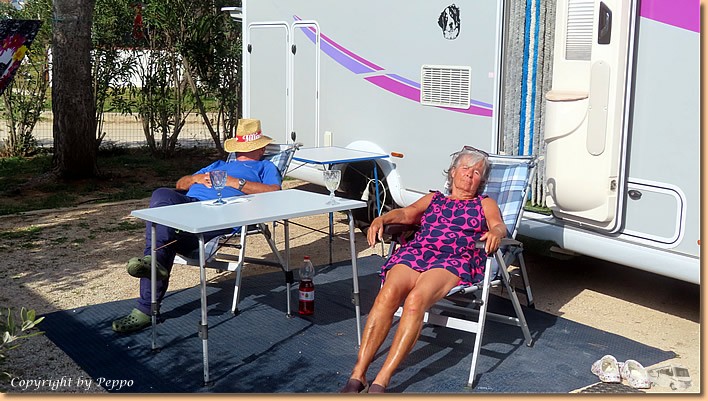 Ab in die Dusche, ein bisschen relaxen und dann sind wir bei Karin und Franz eingeladen. Herzlichen Dank für's Zusammensitzen, es ist wie immer nett mit euch zu plaudern. Am Abend machen wir es uns im Womo gemütlich, morgen am Sonntag gibts für uns einen "Nixtun-Tag", wir werden einfach nur die Sonne geniessen (...und ein bisschen ) |