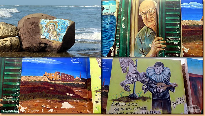 | Bis am späten Vormittag weiss die Sonne nicht so genau was sie will, wir lassen sie überlegen, setzen uns auf die Räder und auf geht's nach Punta Secca. Beim Rundgang durch den Ort kommen immer wieder neue Motive vor die Linse, einfach Augen auf und die Gegend geniessen. Im Ristorante Sand sitzen wir buchstäblich fast im Mare, perfektes Ambiente, wir geniessen Sonne und Apero. |