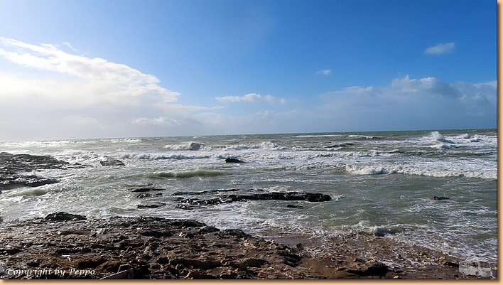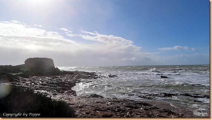 | Der Wettergott spinnt sich auch heute aus. Ordentlich Wind, kurze Regenschauer im Stundentakt, weit vom Wohnmobil weggehen ist nicht unbedingt sinnvoll. Helga geht zur Gemüsefrau, Anmarsch im Trockenen, Heimweg etwas nass, wenigstens ist der Einkauf erfolgreich. Zu Mittag blauer Himmel, nix wie raus, eine Minirunde am Campingplatz soll sich ausgehen. |